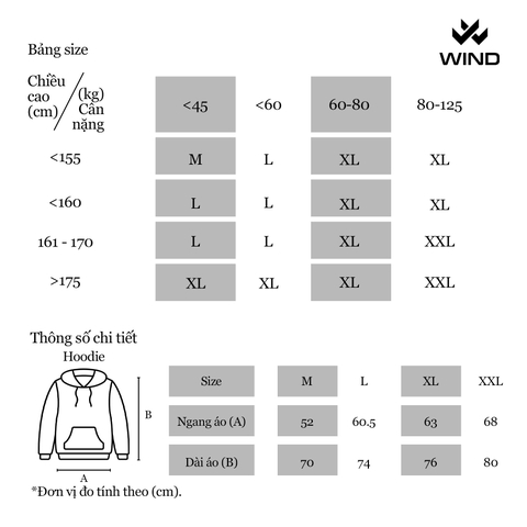 Bảng size dưới đây được WIND nghiên cứu dựa trên dáng người Gen Z Việt Nam: