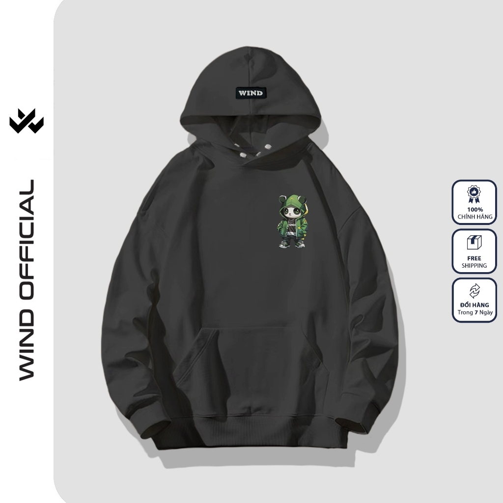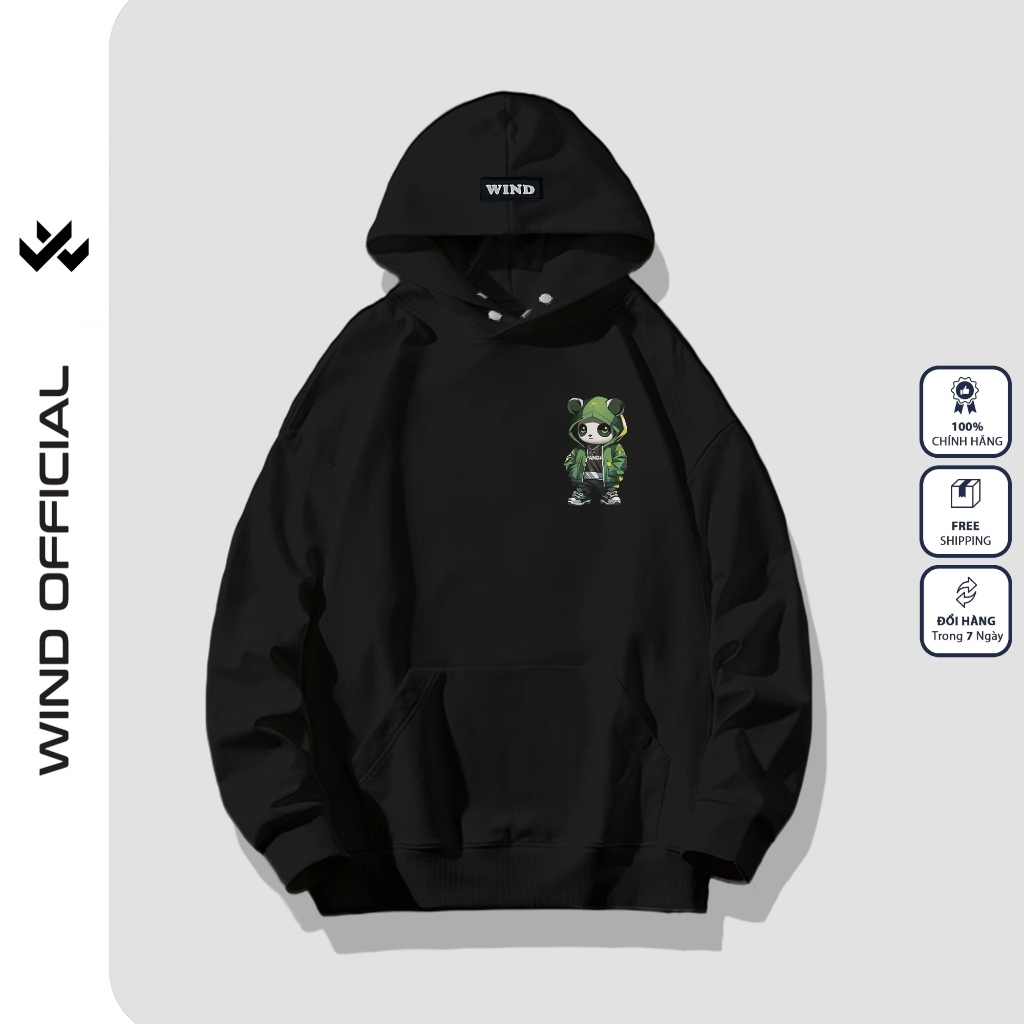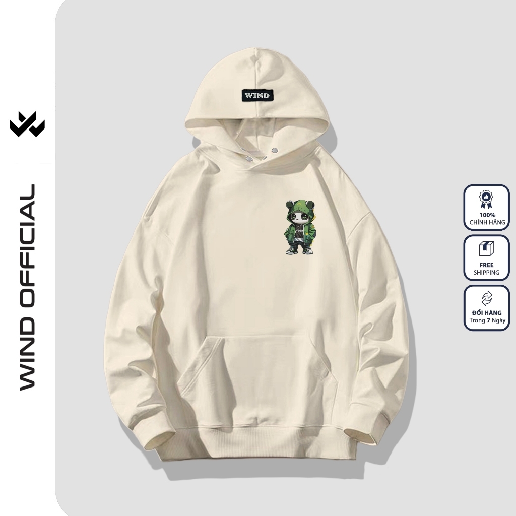 Áo hoodie unisex form rộng WIND Gấu Panda hoodie nút bấm thời trang nam nữ nỉ bông oversize áo khoác chống nắng mùa hè