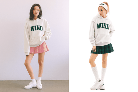 Với các bạn nữ thấp bé, phối hoodie dáng rộng với chân váy tennis hoặc váy ngắn giúp đôi chân trông dài hơn, tạo cảm giác cao ráo, dễ thương.