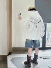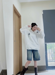 Chọn hoodie form rộng, dài ngang đùi phối với quần short ngắn bên trong. Khi mặc lên trông như bạn đang diện một chiếc váy form rộng – cực kỳ phù hợp cho những buổi đi chơi, cà phê, hoặc hẹn hò nhẹ nhàng.
